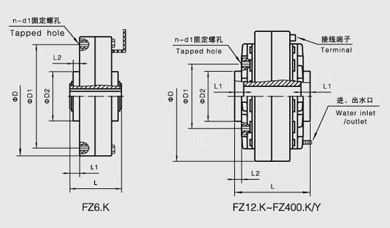 并且FZ-K型磁粉制動器在主動轉子和從動轉子之間的環形空隙內填有高導磁性的合金磁粉,激磁線圈無電流通過時,工作腔中的磁粉呈松散狀態。