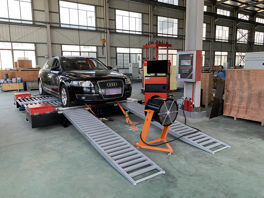 底盤測功機(jī)主要用來測試汽柴油汽車、電動(dòng)汽車、汽柴油摩托車、電動(dòng)摩拖車等機(jī)動(dòng)車動(dòng)力性、多工況排放指標(biāo)、燃油指標(biāo)等性能的室內(nèi)臺(tái)架試驗(yàn)設(shè)備。通過滾筒模擬路面,并用加載裝置進(jìn)行模擬加載,實(shí)現(xiàn)對機(jī)動(dòng)車行駛中各工況的準(zhǔn)確模擬,以及在加速、滑行時(shí),所受阻力、轉(zhuǎn)動(dòng)慣量的模擬。